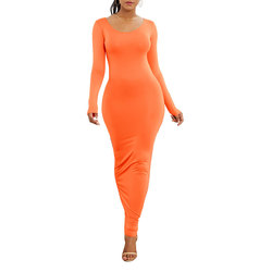Offre Spéciale respirant personnalisé concepteur automne taille naturelle décontracté Midi femmes col rond manches longues robe longue